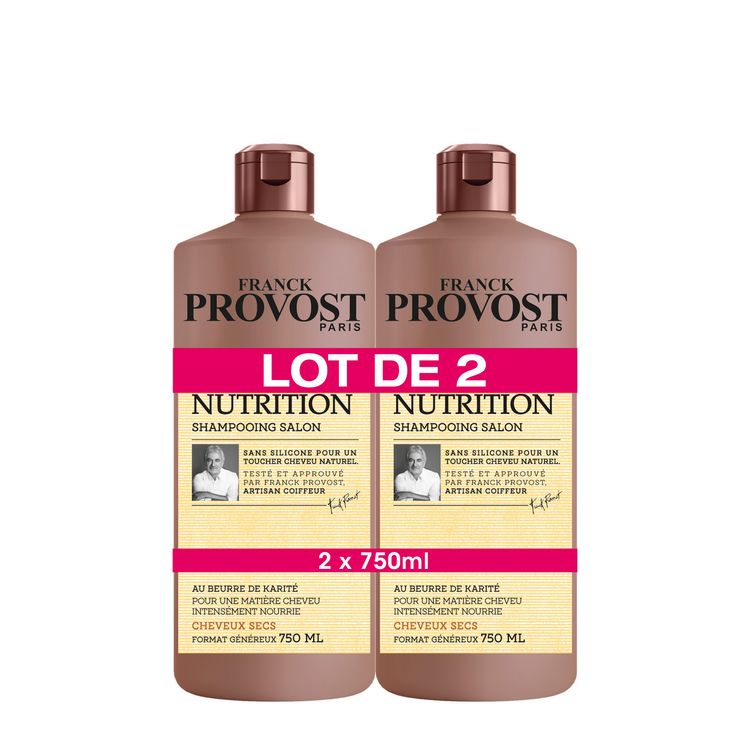 Franck Provost shampooing expert nutrition 2x750ml Shampooing professionnel au beurre de karité pour les cheveux secs ou rêches. Résultat : une chevelure souple et soyeuse.