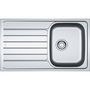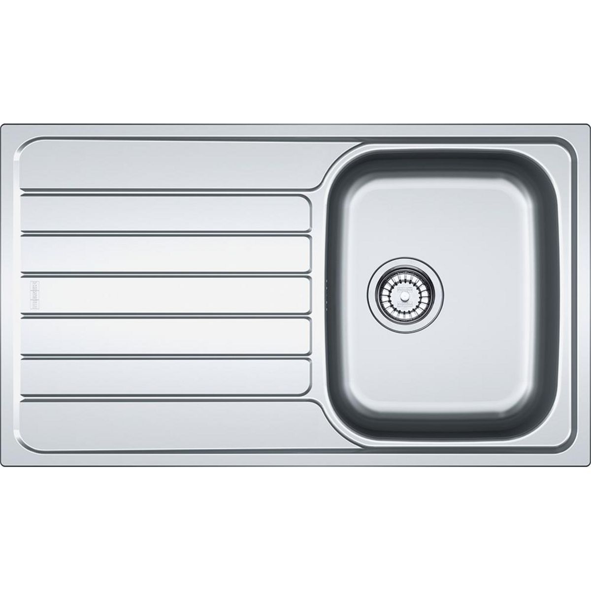 Franke 005665 Evier Spark SKL611-86 Franke 005665 à encastrer en inox dekor pour sous-meuble de 45 cm. Egouttoir réversible. Prépercé Ø 35 mm pour robinetterie et commande rotative. Vidage gain de place comprenant bonde Ø 90 mm et siphon. Bonde automatique dans la grande cuve avec bouton rotatif ino