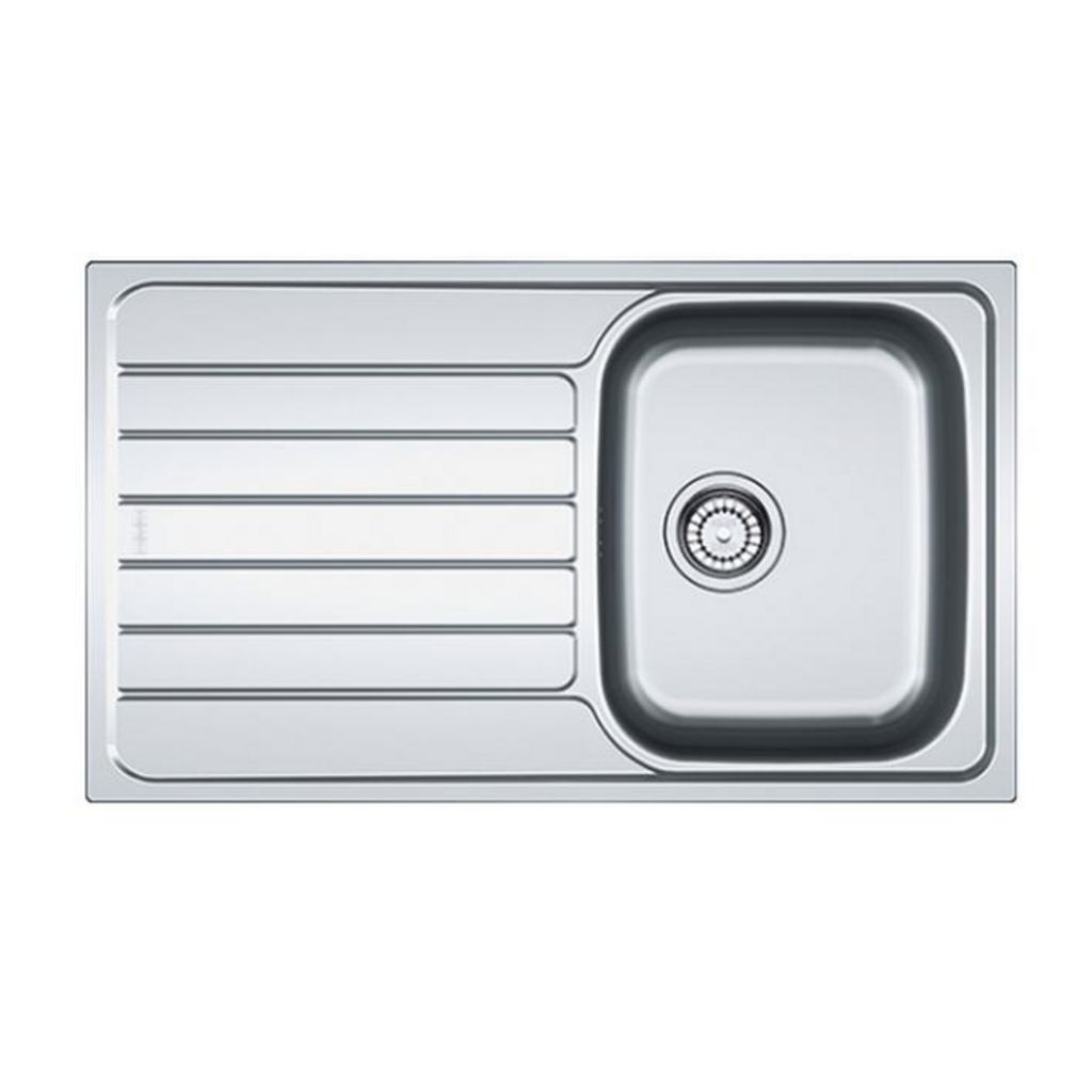 Franke 006099 Evier Spark Spark SKX611-86 Franke 006334 à encastrer en inox pour sous-meuble de 45 cm. Egouttoir réversible. Prépercé Ø 35 mm pour robinetterie et commande rotative. Vidage gain de place comprenant bonde Ø 90 mm et siphon. Bonde automatique dans la grande cuve avec bouton rotatif ino