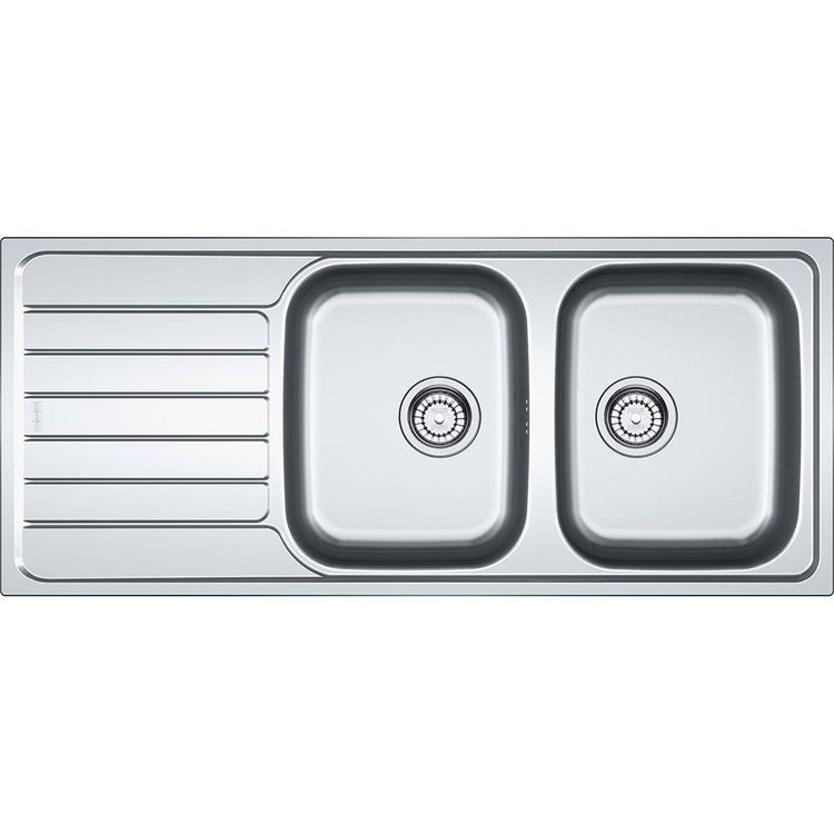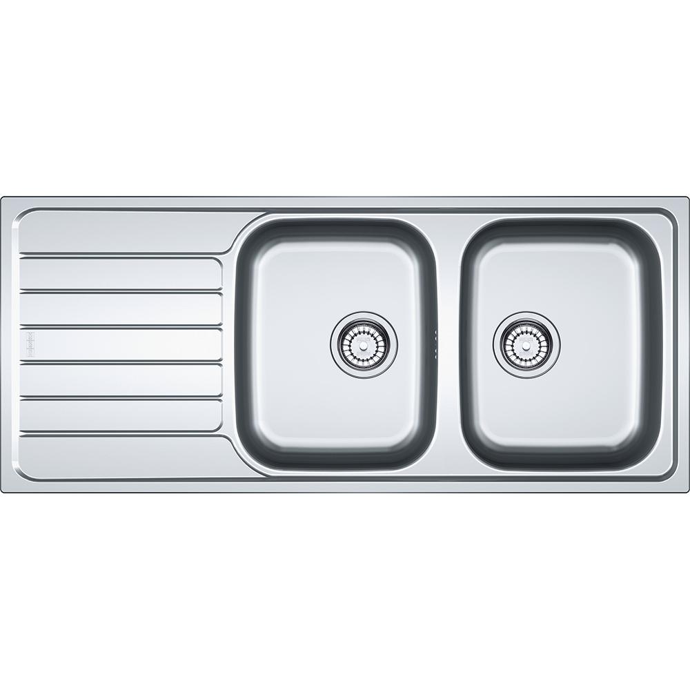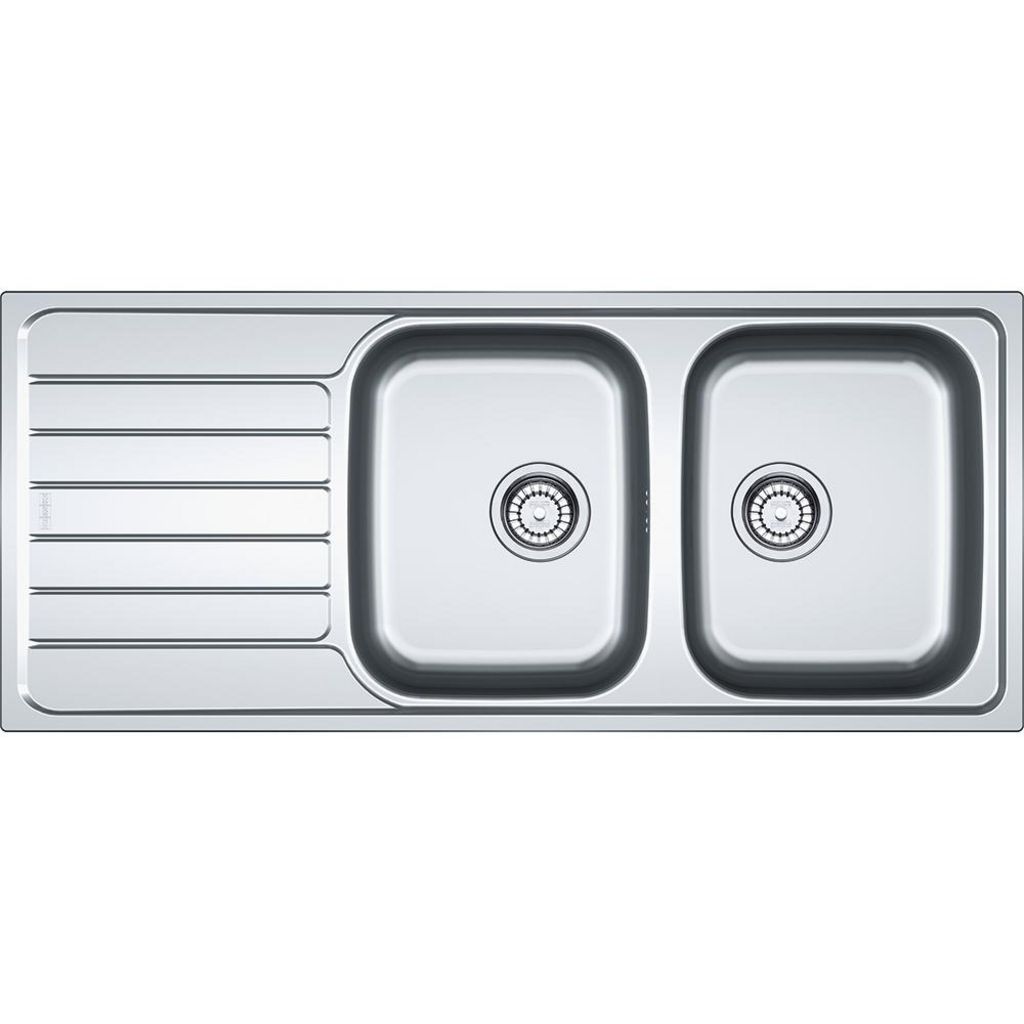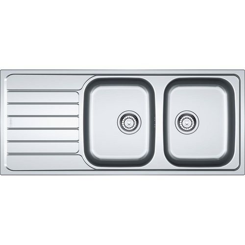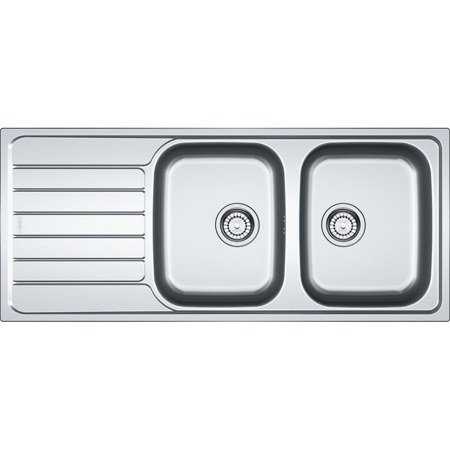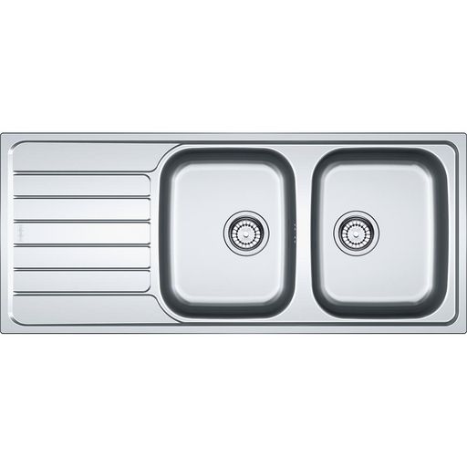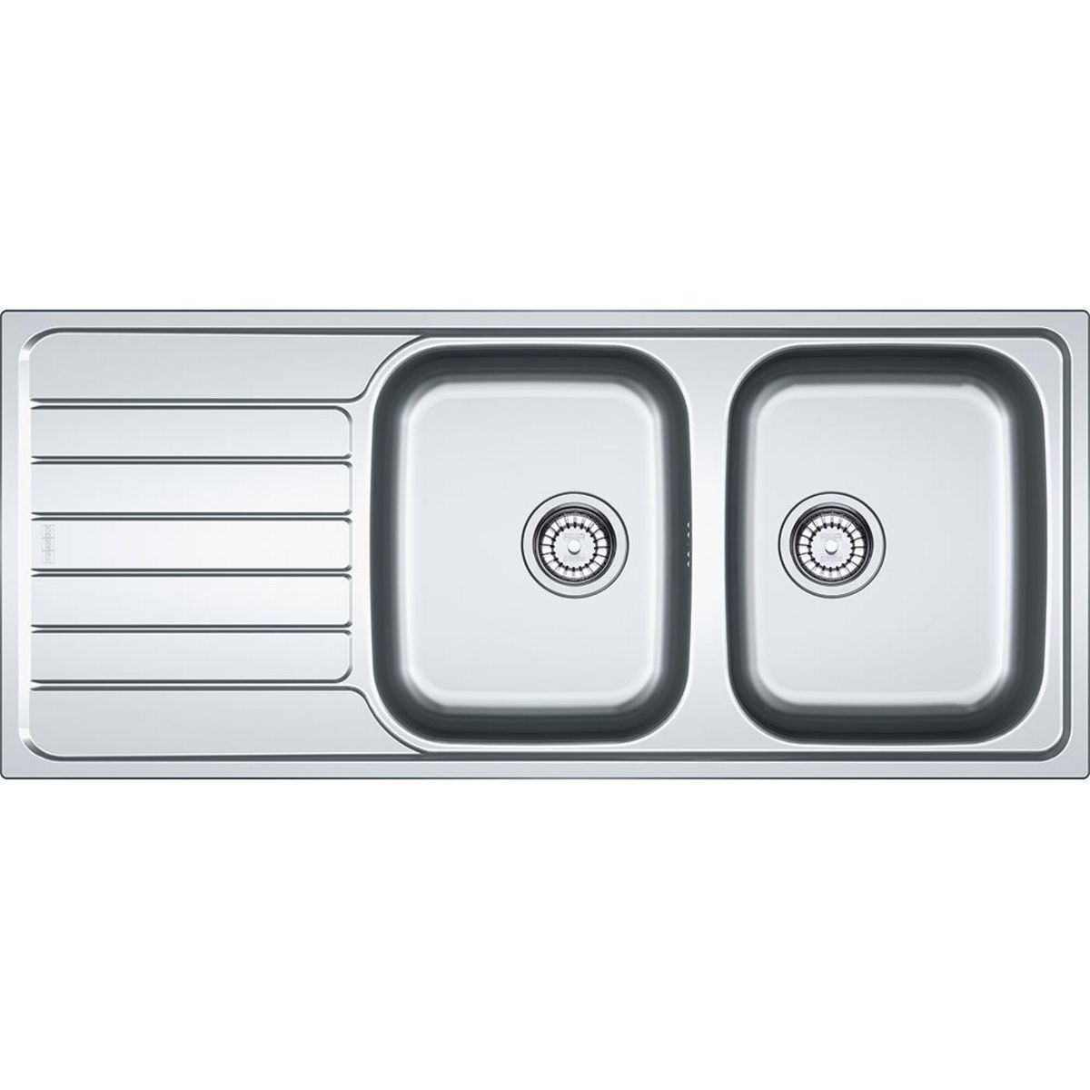 Franke 006464 Evier Spark SKL621 Franke 006464 à encastrer en inox Dekor pour sous-meuble de 80 cm. Egouttoir réversible. Prépercé Ø 35 mm pour robinetterie et commande rotative. Vidage gain de place comprenant bonde Ø 90 mm et siphon. Bonde automatique dans la grande cuve avec bouton rotatif inox.