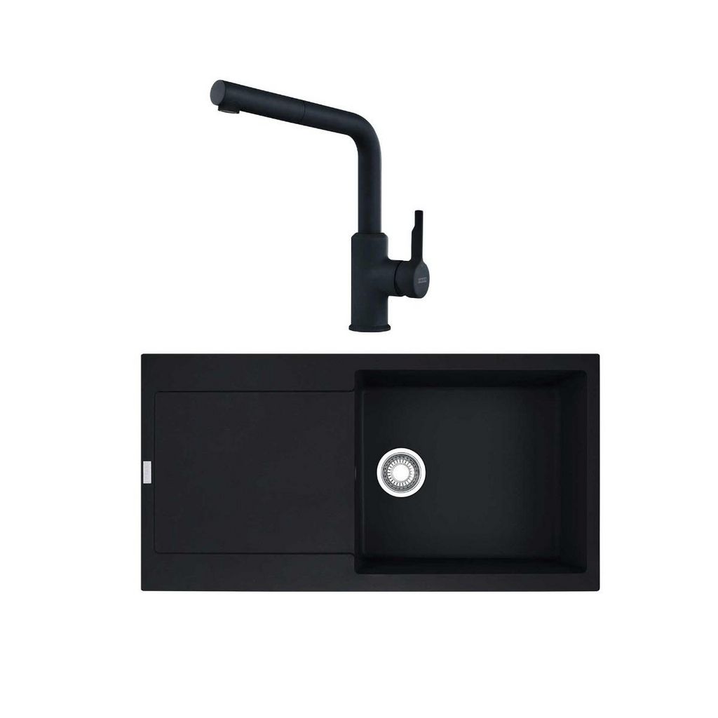Franke 175639 Pack évier + mitigeur Franke 175639 comprenant un évier Maris MRG 611-XL noir mat et un mitigeur à douchette Urban noir mat. - Type de produit : Pack évier + robinetterie.Pack évier + mitigeur : Oui.Gamme : Maris.Modèle(s) : MRG 611-XL.Caisson sous-meuble (mm) : 600.Type d'installation