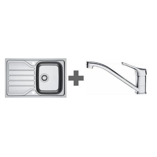 Franke 464467 Pack évier plus mitigeur de Franke 464467. Évier à encastrer Franke FLN 611-78 Inox + mitigeur BASIC bec bas chrome. Un duo simple et efficace pour équiper votre cuisine avec style. L'évier Franke FLN 611-78 en inox lisse séduit par son élégance intemporelle et sa facilité d'entretien. Avec sa cuve de 34 x 42 cm, il permet un usage confortable au quotidien. Son égouttoir réversible s'adapte à toutes les configurations et son vidage automatique avec bouton rotatif en inox apporte une touche pratique et discrète. Le mitigeur BASIC complète l'ensemble avec son bec bas rotatif à 360°, idéal pour les gestes de tous les jours. Fabriqué en laiton avec une finition chrome brillante, il est robuste et fiable. Compatible avec les caissons à partir de 45 cm, cet ensemble compact et fonctionnel convient à toutes les cuisines modernes ou altiques.