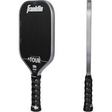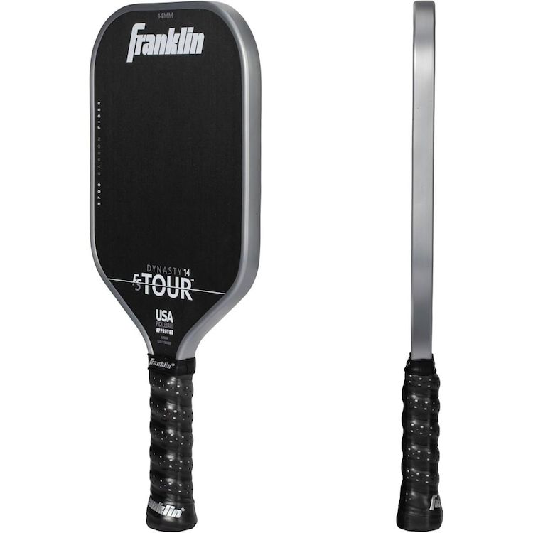 Contient : FRANKLIN SPORTS - RAQUETTE DE PICKLEBALL CARBON - FS TOUR DYNASTY 14 Raquette Pro Tour : développées avec l'aide de la liste des professionnels du pickleball de Franklin, les pagaies FS Tour Series sont conçues pour fonctionner aux plus hauts niveaux du sport et sont officiellement autorisées par USA Pickleball pour les tournois et les compétitions Surface en fibre de carbone : ces raquettes de pickleball FS Tour Series approuvées par les USA Pickleball sont construites avec une couche de surface en fibre de carbone brut T700 de qualité supérieure qui crée une surface de pagaie naturellement texturée pour augmenter la rotation pour une prise de vue précise Noyau en polymère amélioré : le noyau en polymère de 14 mm d'épaisseur et le périmètre injecté de mousse haute densité offrent un point de frappe élargi et amélioré qui donne aux joueurs de pickleball l'équilibre parfait entre contrôle et puissance dans un cadre de poids moyen de 226,8 à 238,1 g Construction en une seule pièce : la construction du noyau en une seule pièce et le noyau entièrement enveloppé dans de la fibre de carbone maximisent l'intégrité structurelle entre la face de la pagaie et la poignée pour une meilleure stabilité, une excellente durabilité et des vibrations atténuées Prise en main de qualité supérieure : les raquettes FS Tour Series Dynasty sont construites avec une poignée allongée et rembourrée de 14,2 cm de long pour une portée maximale ainsi qu'un confort accru et une absorption des chocs (circonférence de la poignée : 10,9 cm)