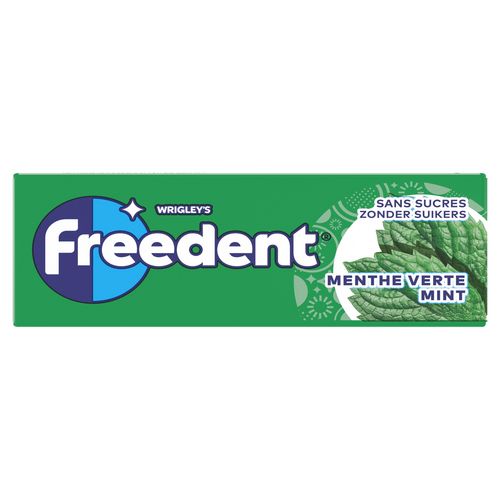 Freedent® Chewing-gum à mâcher sans sucres au bon goût de Menthe Verte qui aide à éliminer les tâches et maintenir la blancheur naturelle des dents. Les chewing-gums sans sucres Freedent® sont bénéfiques pour la santé dentaire car ils aident à neutraliser les acides de la plaque dentaire. Ils sont approuvés par l'Union Française pour la Santé Bucco Dentaire (UFSBD)