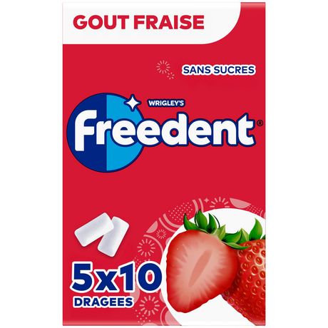 Freedent® Chewing-gum à mâcher sans sucres au bon goût de Fraise qui aide à éliminer les tâches et maintenir la blancheur naturelle des dents. Les chewing-gums sans sucres Freedent® sont bénéfiques pour la santé dentaire car ils aident à neutraliser les acides de la plaque dentaire. Ils sont approuvés par l'Union Française pour la Santé Bucco Dentaire (UFSBD)