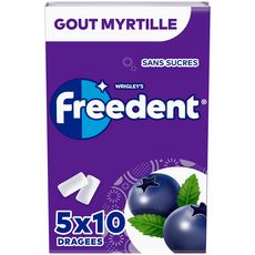 Freedent Multipack de 5 étuis de 10 dragées Goût Myrtille 70G