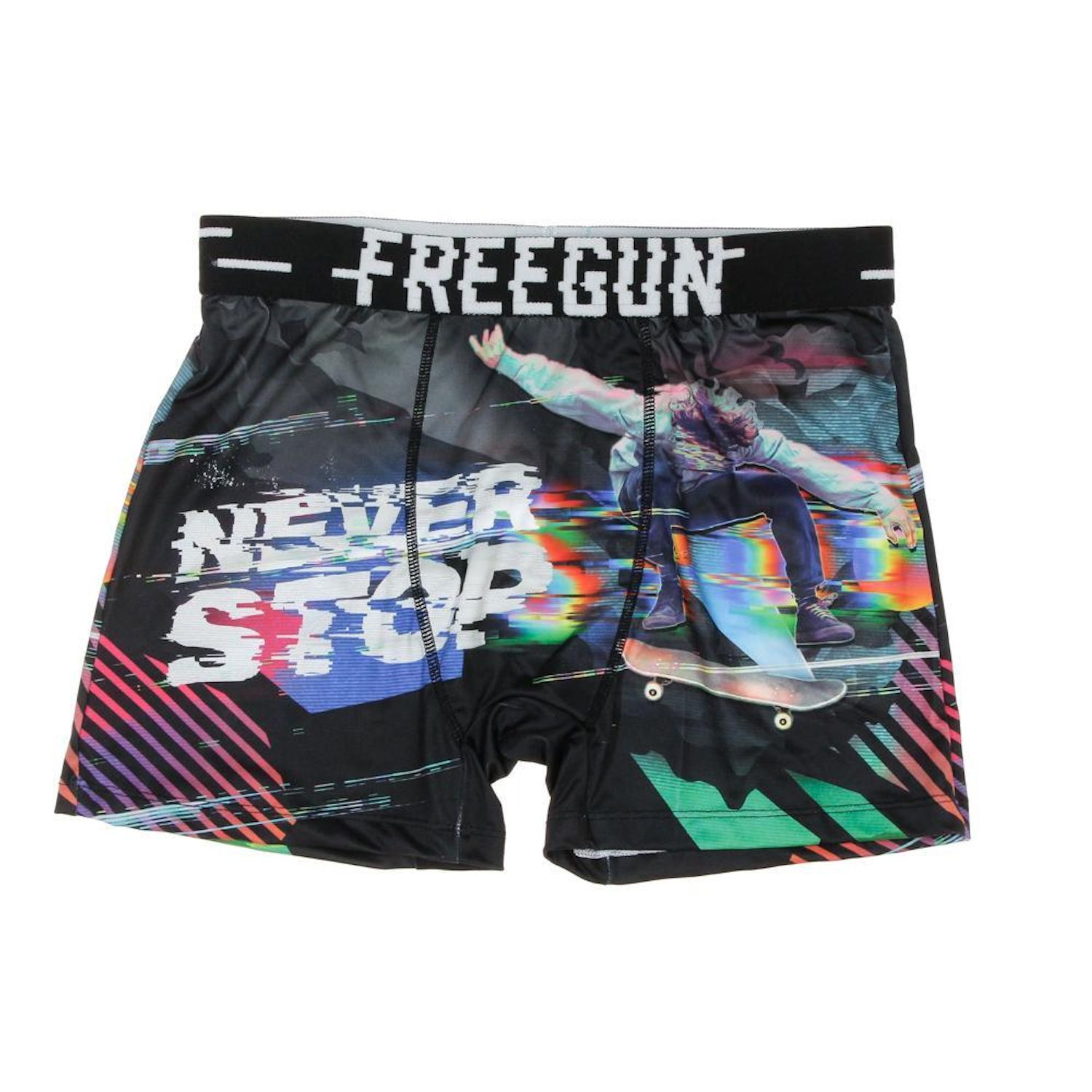 Craquez pour ce boxer de la marque FreegunColoris : Noir/GrisTaille élastiqueComposition : 92% polyester, 8% élasthanneInscription Freegun sur la ceintureCoupe altiqueMotifs imprimés
