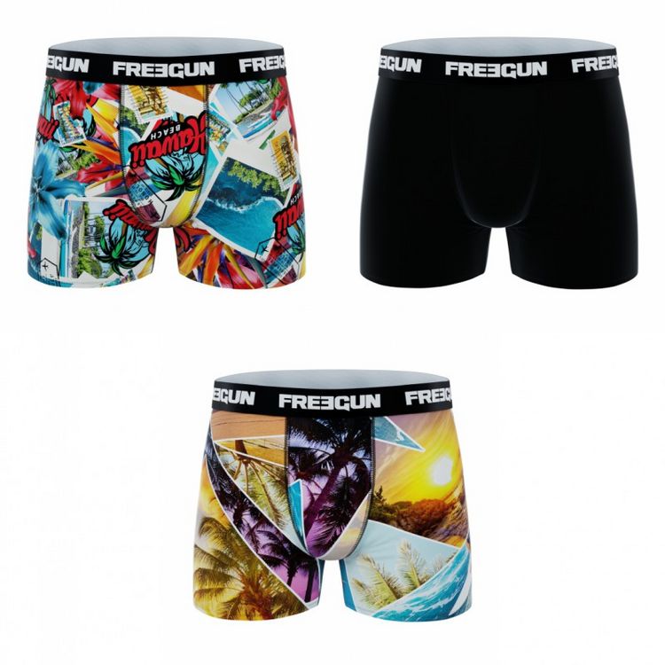 Trop cool, ce lot de 3 boxers en coton de la marque FREEGUN affiche des motifs fantaisie et une ceinture élastiquée contrastée trop stylée ! Ces boxers sont très confortables et agréables à porter.
