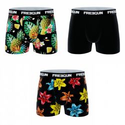 Trop cool, ce lot de 3 boxers en coton de la marque FREEGUN affiche des motifs fantaisie et une ceinture élastiquée contrastée trop stylée ! Ces boxers sont très confortables et agréables à porter.