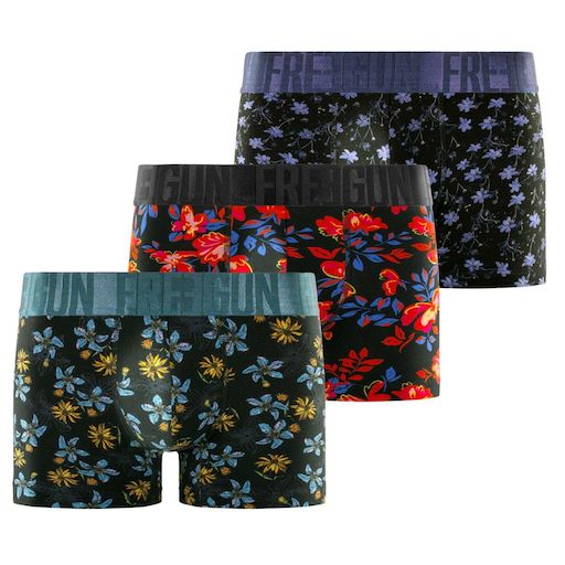 Nos sous-vêtements Freegun Homme Uni sont fabriqués à base de 95% Coton 5% Elasthanne pour un maintien optimal, une liberté de mouvement inégalable grâce à l'élasticité présente dans les fibres du boxer, et un confort en toute circonstance grâce à la douceur du coton stretch. Son design sobre et la douceur du tissu permet de porter ses caleçons pour tout type d'activité au quotidien. Dans ce pack de boxers nous vous proposons des imprimés à fleur rouge, vert et bleu. Ce lot de caleçons Freegun est lavable en machine à 30°C et résistera à la décoloration. Ces slips sont disponibles en taille S, M, L, XL, XXL, conformément aux standards de tailles européennes. Ce Lot de 3 boxers Freegun a une coupe Classique et une ceinture élastique Large (4 cm) Blanc pour un look sobre et intemporel toute la journée !