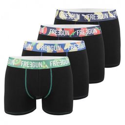 Nos sous-vêtements Freegun Homme Imprimé sont fabriqués à base de 95% Coton 5% Elasthanne pour un maintien optimal une liberté de mouvement inégalable grâce à l'elasticité présente dans les fibres du boxer et un confort en tout circonstance grâce à la douceur du coton stretch. Son design sobre et la