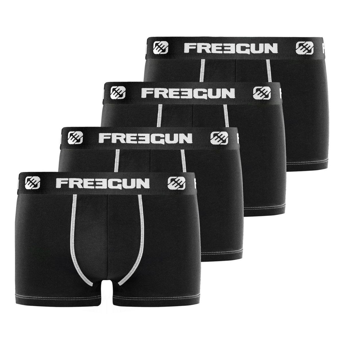 Nos sous-vêtements Freegun Homme Uni sont fabriqués à base de 95% Coton 5% Elasthane pour un maintien optimal une liberté de mouvement inégalable grâce à l'elasticité présente dans les fibres du boxer et un confort en tout circonstance grâce à la douceur du coton stretch. Son design sobre et la douceur du tissu permet de porter ses caleçon pour tout type d'activité au quotidien. Dans ce pack de boxers nous vous proposons différents coloris : Noir, Blanc. Ce lot de caleçons Freegun est lavable en machine à 30° et résistera à la décoloration. Ces slips sont disponibles en tailles S, M, L, XL, XXL, conformément aux standards de tailles européennes. Le Lot de 4 boxers Freegun a une coupe Classique et une ceinture élastique Large Noir pour un look sobre et intemporel toute la journée !