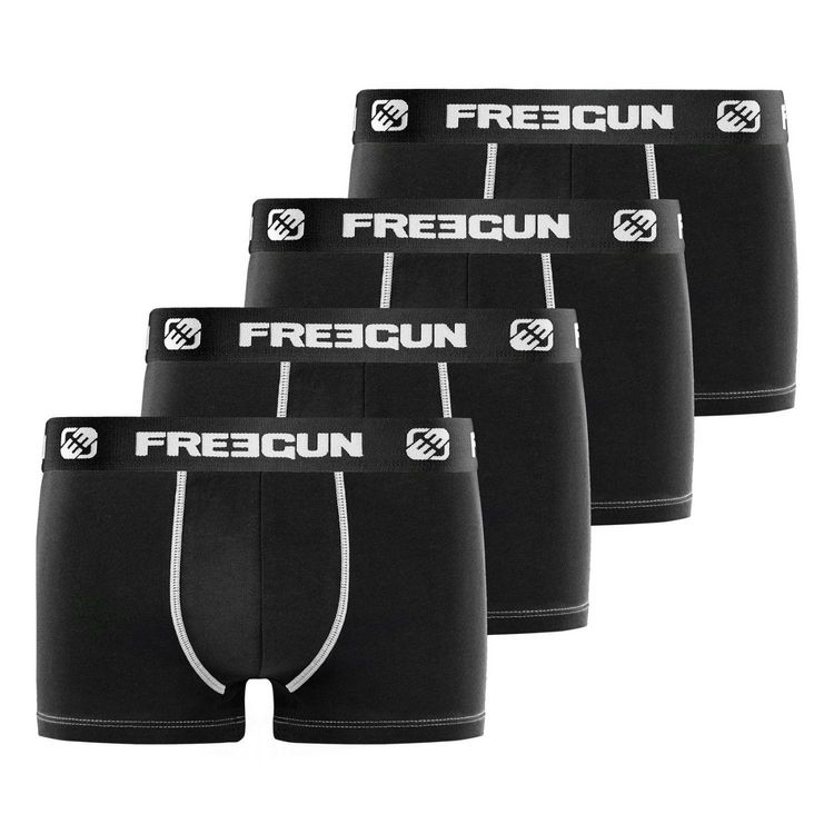 Nos sous-vêtements Freegun Homme Uni sont fabriqués à base de 95% Coton 5% Elasthane pour un maintien optimal une liberté de mouvement inégalable grâce à l'elasticité présente dans les fibres du boxer et un confort en tout circonstance grâce à la douceur du coton stretch. Son design sobre et la douc