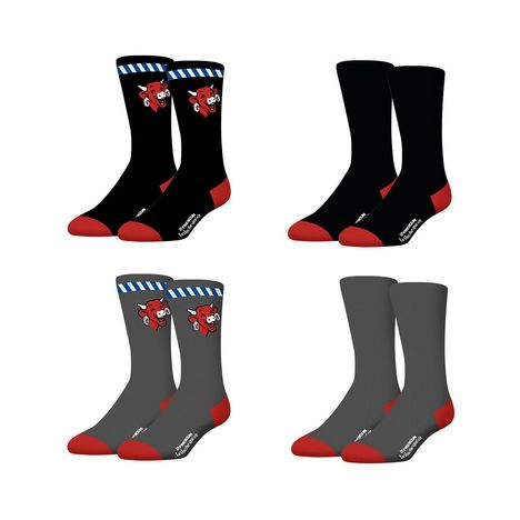 Revigorez votre style avec les 3 lots de 4 paires de chaussettes fantaisie Freegun La Vache Qui Rit, une alliance créative entre Freegun et l'iconique La Vache Qui Rit. Conçues spécifiquement pour les hommes, ces chaussettes se déclinent en quatre ensembles séduisants : noir et rouge, bleu, gris et