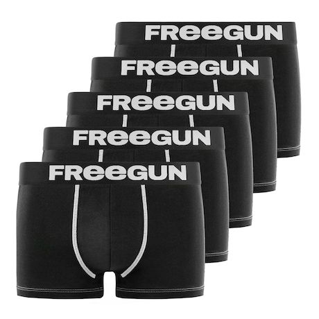 Nos boxers Freegun Garcon Uni Uni sont concus à base de 92% Polyester 8% Elasthanne / Doublure 100% Coton pour un maintien optimal, une liberté de mouvement inégalable avec l'elasticité proposé dans le tissu du sous-vêtement et un confort en toute circonstance grâce à la douceur du tissu microfibre et à la doublure en coton présente à l'interieur du slip Freegun. Les sous-vêtements Uni Freegun sont Confort, Respirant, Stretch, la ceinture élastique Large Noir permet une tenue accrue sans gêne. Dans ce pack de boxers nous vous proposons différents coloris : Noir,Blanc. Ce lot de caleçons Freegun est lavable en machine à 30°C et resistera à la décoloration. Les imprimés Freegun sont dessinés en France, nos équipes de graphistes recherchent sans cesse de nouveaux design inédits à arborer sur nos calecons. Ces boxers Freegun sont disponibles en taille S, M, L, XL, XXL, conformément aux standards des tailles européennes. Ne pas sécher au sèche linge, ne pas repasser.