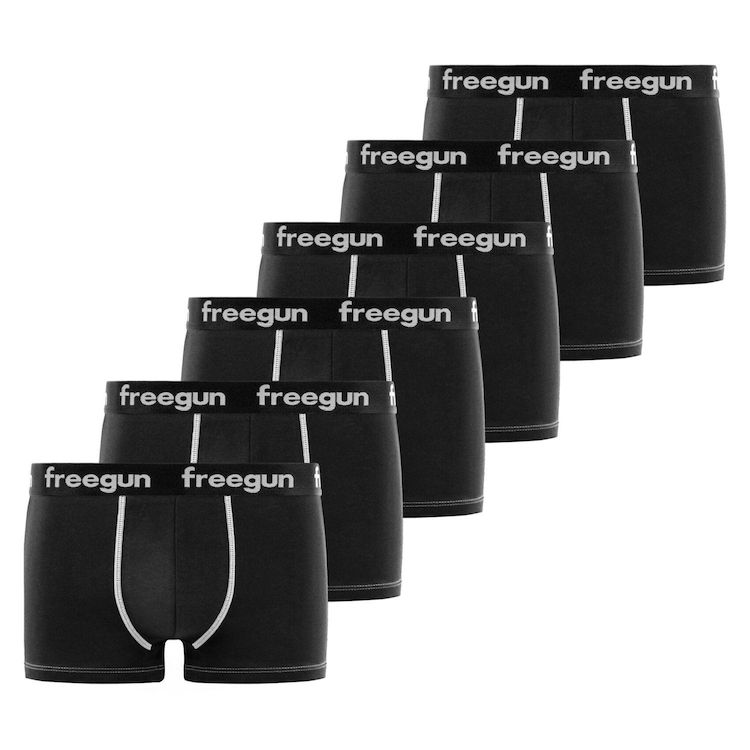 Nos sous-vêtements Freegun Homme Uni sont fabriqués à base de 95% Coton 5% Elasthane pour un maintien optimal une liberté de mouvement inégalable grâce à l'elasticité présente dans les fibres du boxer et un confort en tout circonstance grâce à la douceur du coton stretch. Son design sobre et la douc