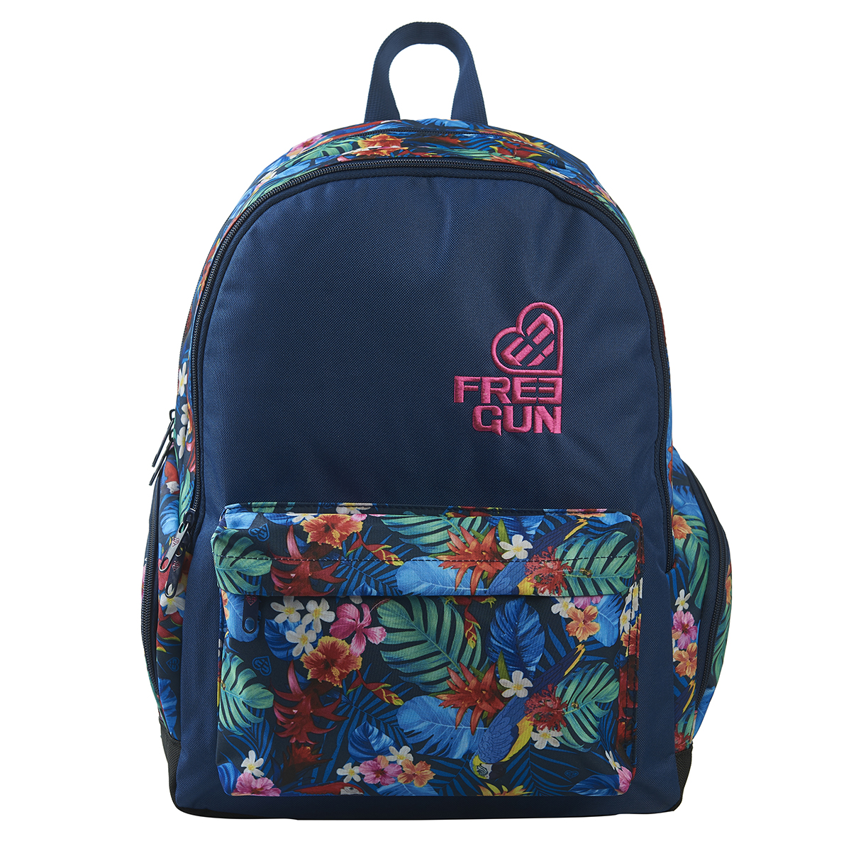 Sac à dos 2 compartiments bleu motifs fleurs