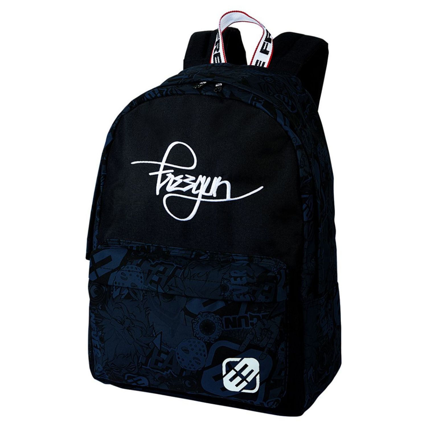 1 compartiment intérieur. 1 poche extérieure de rangement zippée. Dos et bretelles moussés. Polyester (32 x 24 x 43 cm)