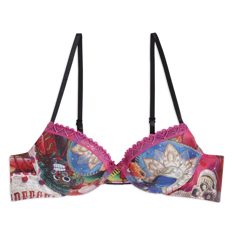 Imprimé coloré et confort assuré, les filles adorent ce soutien-gorge Freegun ! Microfibre imprimée très confortable, légère et douce. Soutien-gorge à armatures, bonnets matelassés apportant un léger effet ampliforme, bonnets bordés de fine dentelle, bretelles réglables, fermeture par un crochet a