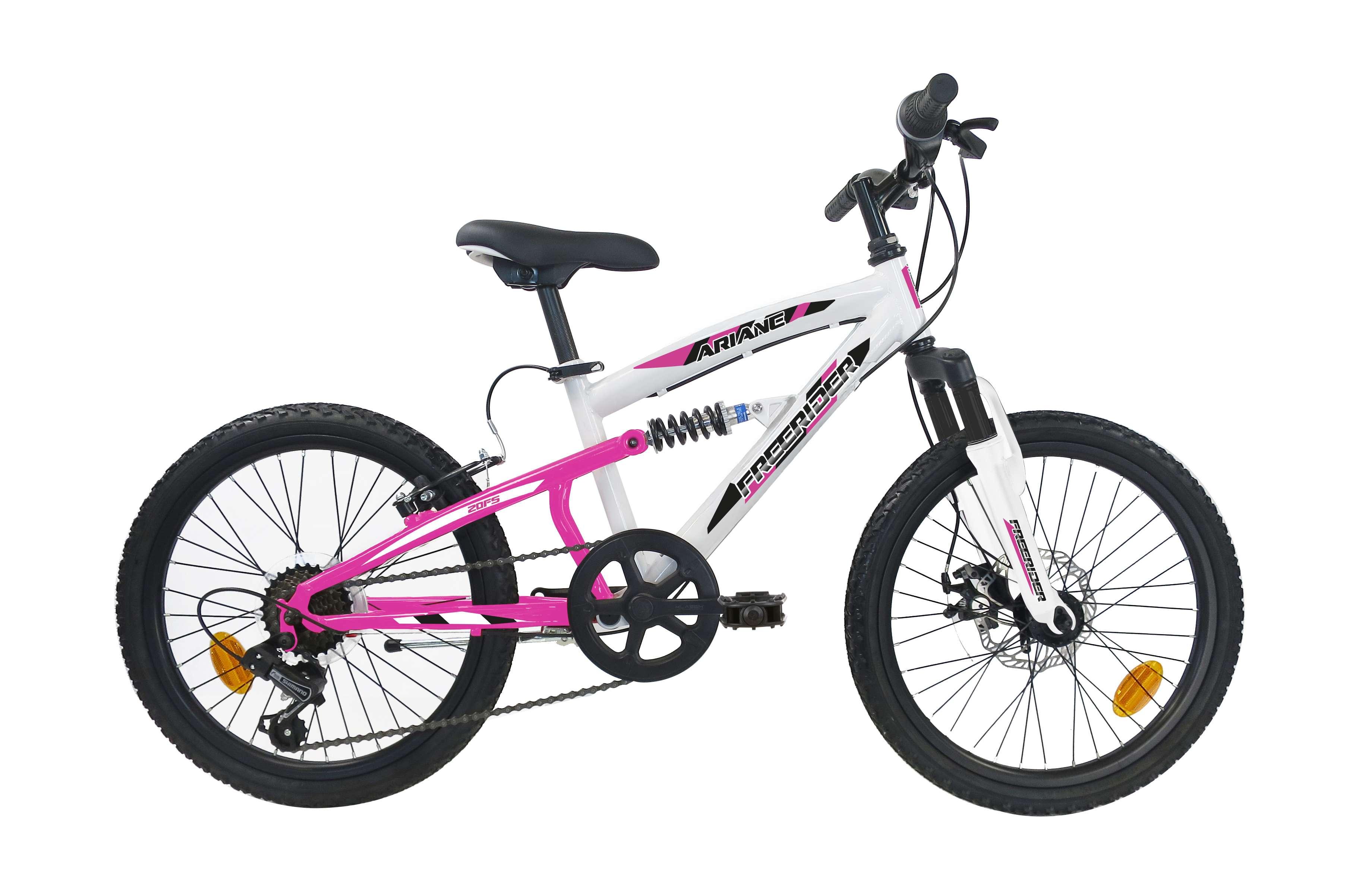 Vélo enfant - VTT 20'' Fille - Tout Suspendu - Frein à disque avant - 6 Vitesses - Dérailleur Shimano