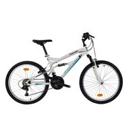 Vélo VTT 24'' avec cadre suspendu et fourche télescopique - 18 Vitesses Indexées via poignées tournantes indexées Grip Shift- Dérailleur arrière Shimano TY21 - Freins V-Brake en composite noire - Jantes en Aluminium avec attache rapide avant Sonnette.