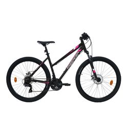 Vélo VTT 27,5'' Rigide Femme Freerider avec cadre rigide en aluminium - Double Freins à Disque - Dérailleur Shimano - Fourche télescopique et Jantes en aluminium renforcées noires
