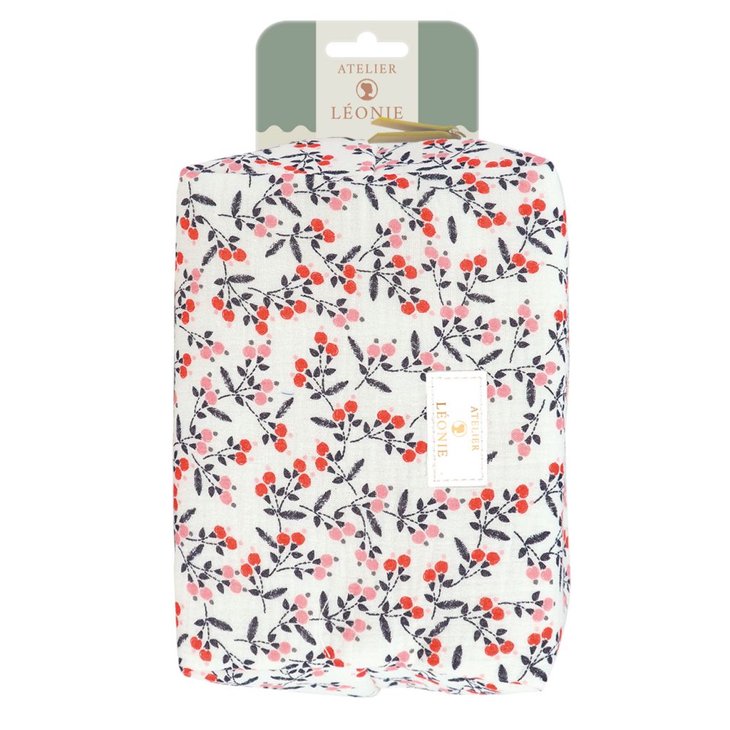 Atelier Léonie trousse de toilette femme gaze de coton floral 21cm X 15cm