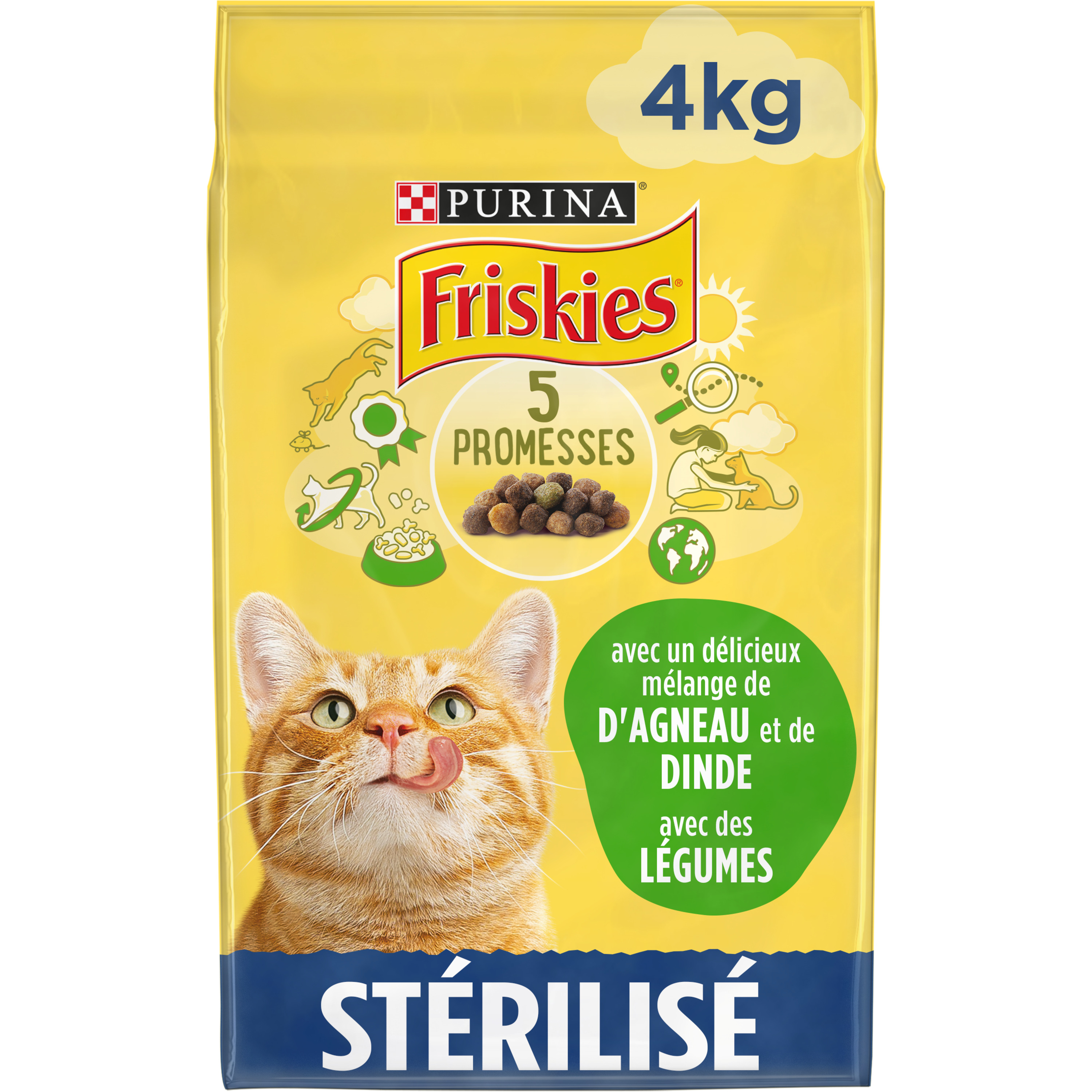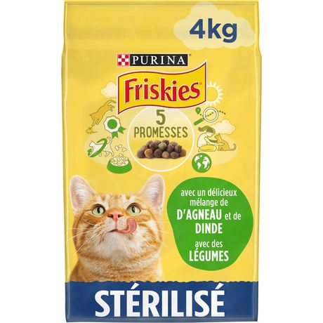 Les 5 Promesses FRISKIES®. Depuis le jour où vous avez accueilli votre chat chez vous, vous avez pris un engagement. La promesse de prendre soin de lui, de bien le nourrir et de l'aider à vivre une vie heureuse et saine pour le plus grand bonheur de votre foyer. Avec plus de 50 ans d'expertise, FRISKIES® nourrit depuis des générations des chats heureux et en bonne santé grâce à une alimentation savoureuse et de qualité. C'est une grande responsabilité. Tout comme vous, chez FRISKIES®, nous tenons nos engagements et 5 promesses nous tiennent à cœur : - Nutrition : une savoureuse recette 100% complète et équilibrée, élaborée avec un mélange de protéines animales et de protéines végétales - Qualité : des centaines de contrôles quotidiens sont effectués tout au long de notre processus de production - Expertise : tous nos produits sont développés par les nutritionnistes Purina - Traçabilité : nos recettes sont préparées avec des ingrédients de haute qualité, rigoureusement sélectionnés provenant de fournisseurs de confiance - Notre engagement 2025 : Nous nous engageons à rendre nos emballages 100% recyclables ou réutilisables d'ici 2025 Toutes les recettes FRISKIES® sont sans colorants, arômes et conservateurs artificiels.