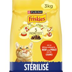 Les 5 Promesses FRISKIES®. Depuis le jour où vous avez accueilli votre chat chez vous, vous avez pris un engagement. La promesse de prendre soin de lui, de bien le nourrir et de l'aider à vivre une vie heureuse et saine pour le plus grand bonheur de votre foyer. Avec plus de 50 ans d'expertise, FRISKIES® nourrit depuis des générations des chats heureux et en bonne santé grâce à une alimentation savoureuse et de qualité. C'est une grande responsabilité. Tout comme vous, chez FRISKIES®, nous tenons nos engagements et 5 promesses nous tiennent à cœur : - Nutrition : une savoureuse recette 100% complète et équilibrée, élaborée avec un mélange de protéines animales et de protéines végétales - Qualité : des centaines de contrôles quotidiens sont effectués tout au long de notre processus de production - Expertise : tous nos produits sont développés par les nutritionnistes Purina - Traçabilité : nos recettes sont préparées avec des ingrédients de haute qualité, rigoureusement sélectionnés provenant de fournisseurs de confiance - Notre engagement 2025 : Nous nous engageons à rendre nos emballages 100% recyclables ou réutilisables d'ici 2025 Toutes les recettes FRISKIES® sont sans colorants, arômes et conservateurs artificiels.