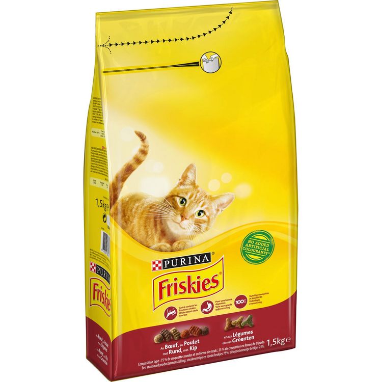 Vos chats sont de véritables aventuriers en quête d'exploration. Cela fait d'eux des membres de la famille captivants qui apportent plein d'énergie dans votre foyer. Nous voulons encourager leur goût pour la découverte et la liberté en satisfaisant leurs besoins nutritionnels.C'est pour cela que les experts PURINA ont développé la formule FRISKIES pour chats adultes : de délicieuses croquettes de qualité, soigneusement élaborées pour nourrir l'insatiable appétit de découverte de votre chat.Sans colorants, arômes et conservateurs artificiels ajoutés.Depuis plus de 45 ans, FRISKIES a la grande responsabilité de fournir une alimentation savoureuse et de qualité à des millions de chats. Nous nous assurons que tous les chats nourris avec nos délicieuses croquettes reçoivent une alimentation complète et équilibrée. Les recettes FRISKIES sont élaborées sans colorants, arômes et conservateurs artificiels ajoutés. Ainsi vous pouvez nourrir votre chat avec de délicieux repas qu'il aime tant, et en être fier.Avec FRISKIES, le monde des découvertes commence avec une bonne alimentation pour soutenir les fonctions vitales de votre chat : - une nutrition 100% complète et équilibrée.- avec des fibres d'origine naturelle pour favoriser une bonne digestion.FRISKIES donne à votre chat toute la nutrition dont il a besoin pour se lancer dans ses aventures quotidiennes : avec les recettes qu'il adore, vous contribuez à la bonne santé de votre aventurier à quatre pattes. Aliment complet pour chats adultes.