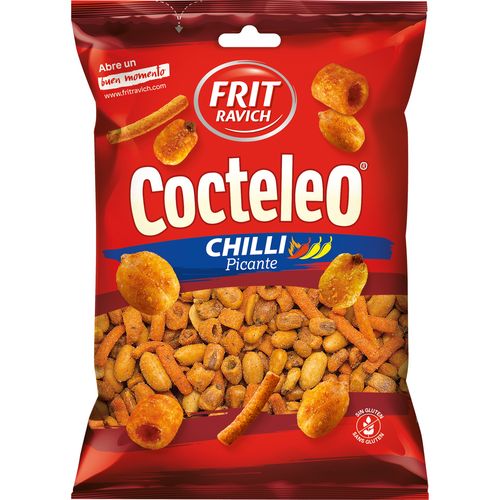 Ingrédients : Maïs frit, ARACHIDES blanchies frites et salées, produit apéritif frit saveur barbecue [maïs, huile de tournesol, sel, arôme, maltodextrine de maïs, exhausteurs de goût (E-621, E-635), arôme de fumée, acidifiant (E-330)], produit apéritif frit saveur fromage [maïs, huile de tournesol, sel, arôme, colorants (E-160c, E-160b), acidifiant (E-330)], huile de tournesol, arôme chili [sel, amidon de maïs, poudre de paprika, exhausteurs de goût (E-621, E-631, E-627), dextrose, arôme, oignon en poudre, conservateur (E-262ii), tomate en poudre, colorant (E-160c), arôme de fumée], sel