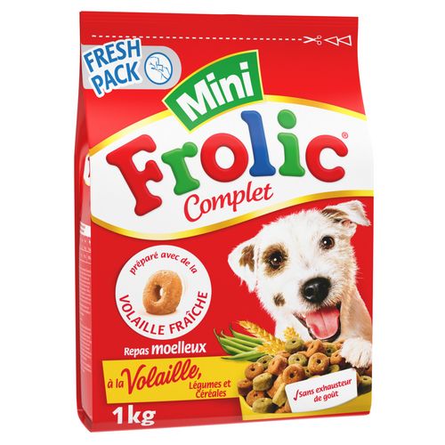 Les croquettes Frolic® Mini Complet à la volaille sont disponibles en format sac de 1 kg.