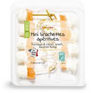 Mini brochettes de fromage au lait pasteurisé avec inclusions d'aneth, zestes de citron et saumon fumé ASC, décongelées