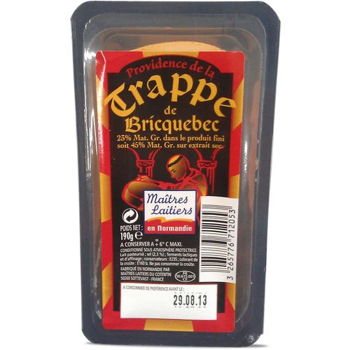 Fromage fabriqué en Normandie. Affiné en cave environ 4 semaines Trappe 23% Mat. Gr. dans le produit fini, soit 45% Mat. Gr. sur matière sèche