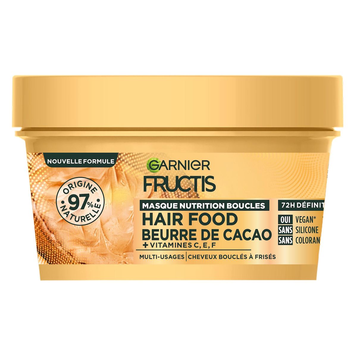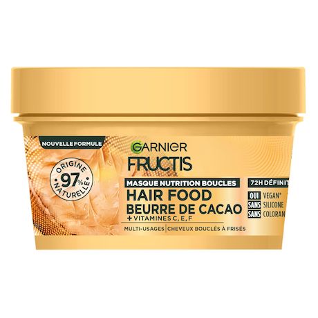 Découvrez notre masque Hair Food ultra-nourrissant au cacao ! Sa texture généreuse & sa nouvelle formule enrichie en vitamines C, E & F* nourrissent le cheveux en profondeur pour 72h de définition** . * dérivés de vitamines C et F ** Test instrumental 72h de définition