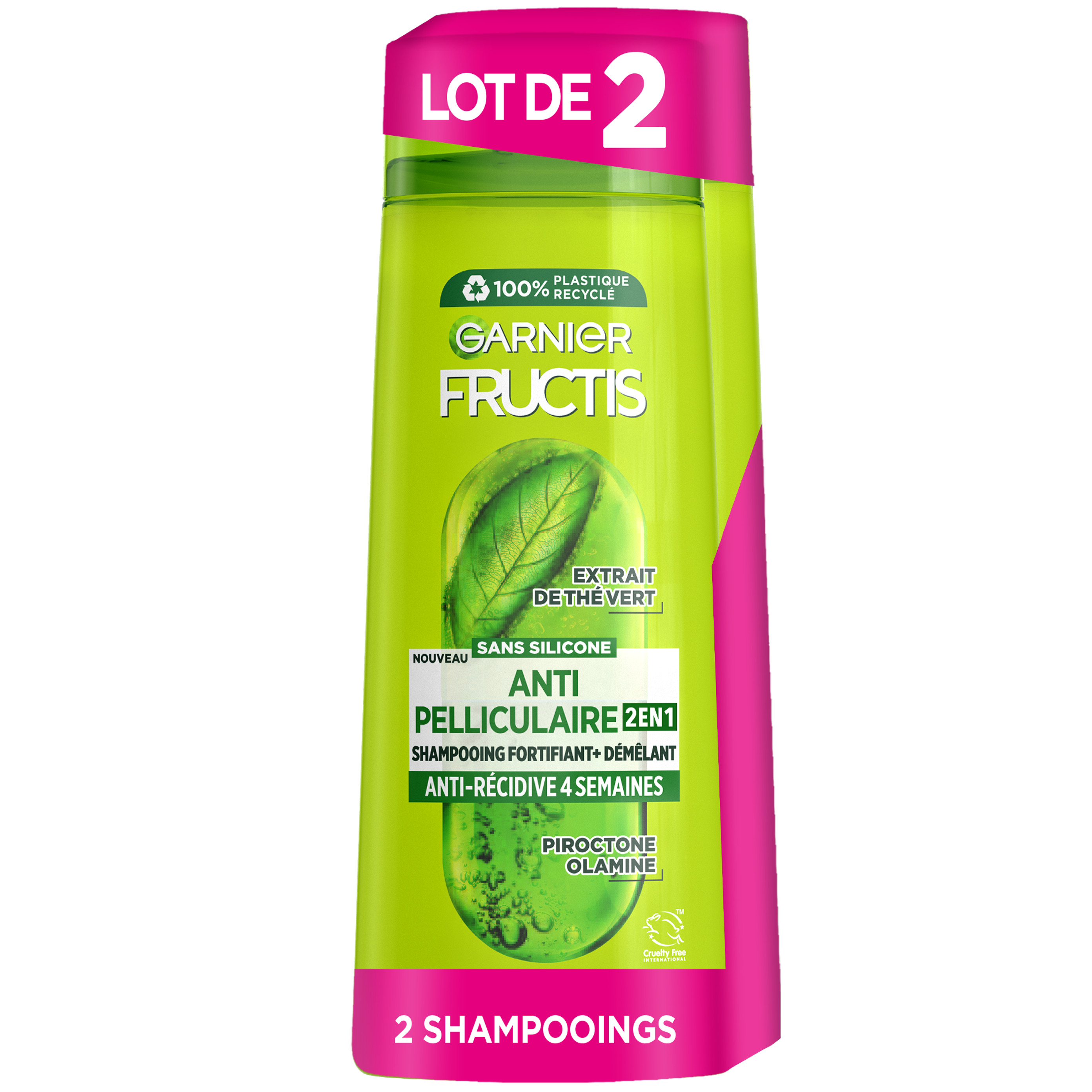 Garnier Fructis 2en1 Anti-Pelliculaire Shampooing antipelliculaire 2en1 500 ml Un shampooing fortifiant et antipelliculaire qui allie efficacité, plaisir d’utilisation et respect des cheveux et du cuir chevelu. Il est adapté à un usage quotidien. Débarrassés de leurs pellicules, les cheveux respirent à nouveau et retrouvent leur brillance. Ils sont instantanément démêlés.