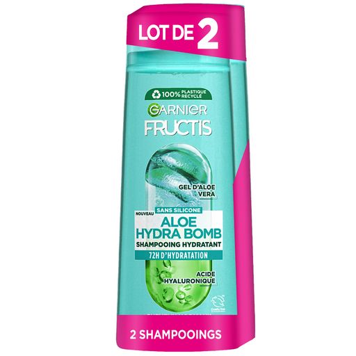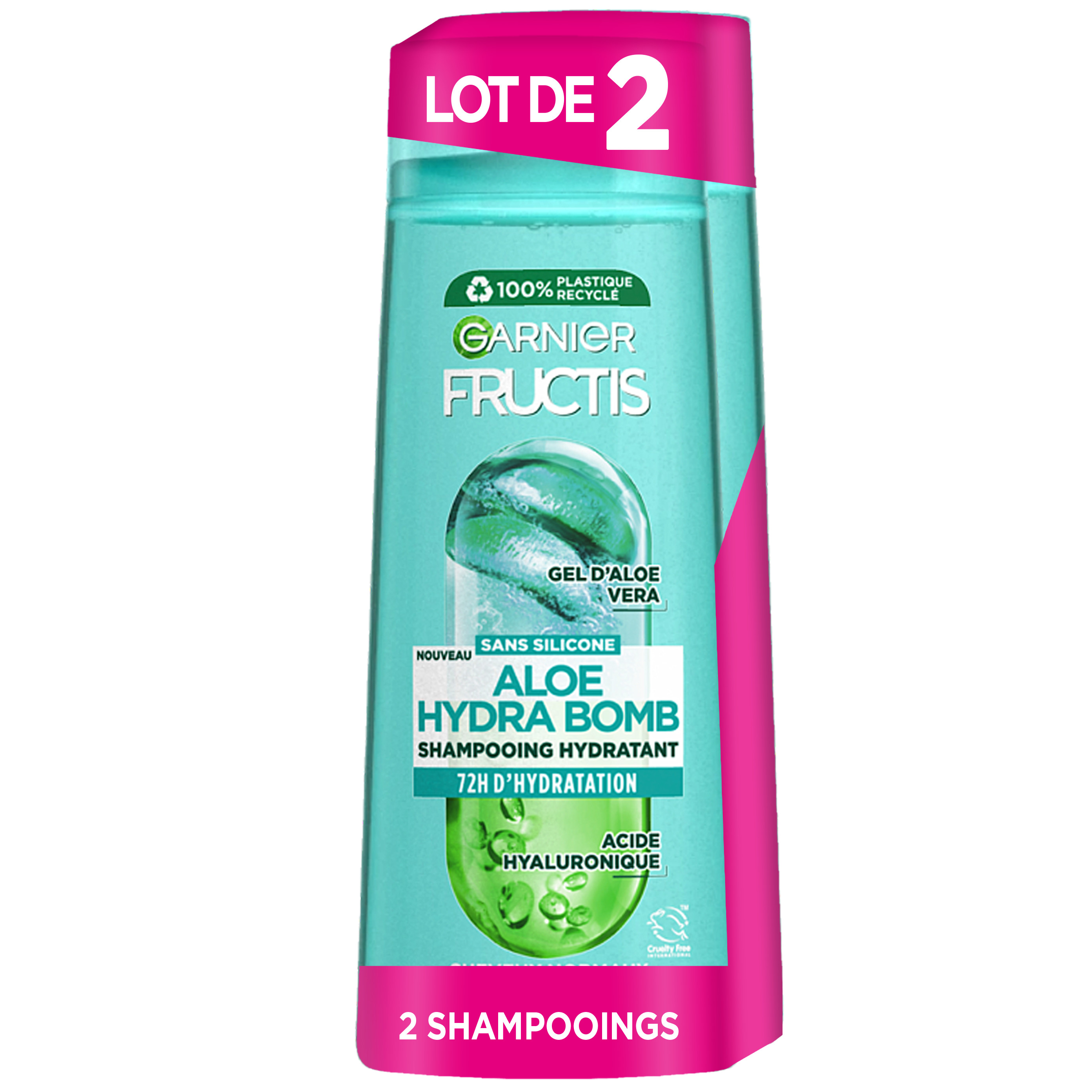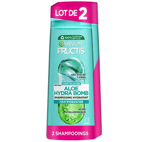 GarnierFructisHydra aloeHydra bombShampooingShampoingAloeCheveux normauxShampoing hydratantactifs de fruitsgel aloe verasans alourdir