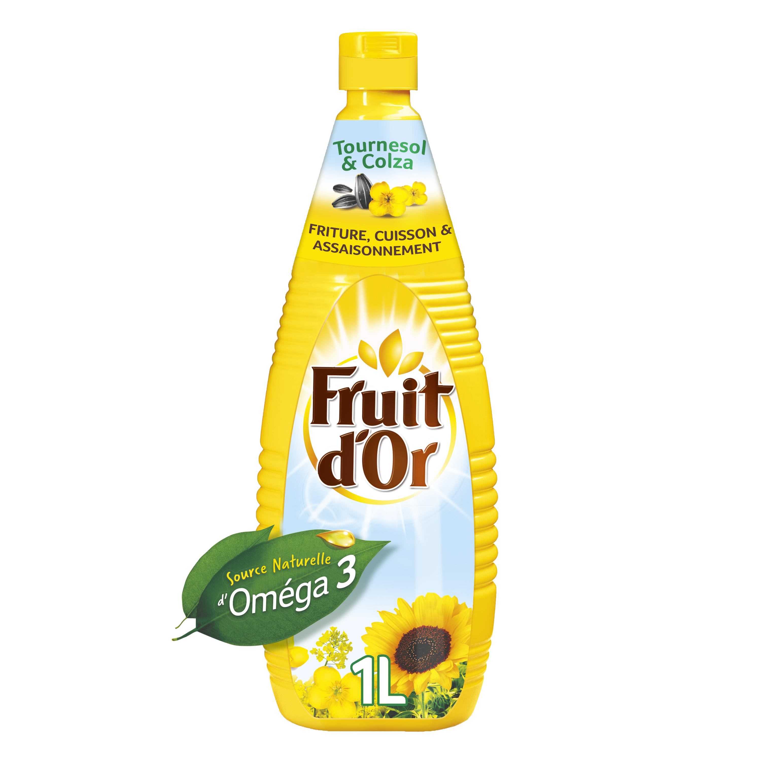Issue de graines de tournesol et de colza, l'huile Fruit d'Or est naturellement source d'Oméga 3 et de Vitamine E. Les Oméga 3 : vos alliés santé ! Parce que ces acides gras essentiels ne sont pas synthétisés par votre organisme, il est indispensable d'en consommer au quotidien. De plus, ils participent à votre santé cardio-vasculaire.