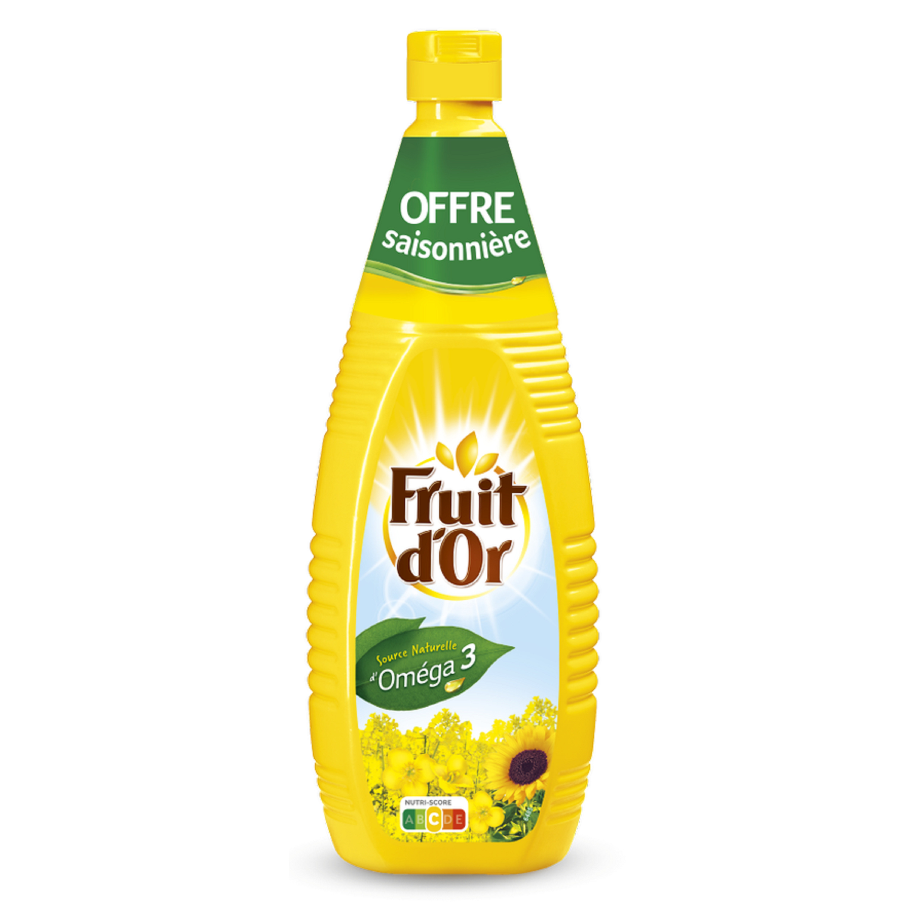 Issue de graines de tournesol et de colza, l'huile Fruit d'Or est naturellement source d'Oméga 3 et de Vitamine E. Les Oméga 3 : vos alliés santé ! Parce que ces acides gras essentiels ne sont pas synthétisés par votre organisme, il est indispensable d'en consommer au quotidien. De plus, ils participent à votre santé cardio-vasculaire.