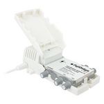Répartiteur 4 TV - Classe RE-D : D1 - Filtre 5G-LTE700 - Bande passante 47-698 MHz - Ajustement du gain 3 à 18 dB - Tournevis de réglage fourni - Alimentation 230 V AC 3W/50-60Hz - Témoin de mise sous tension