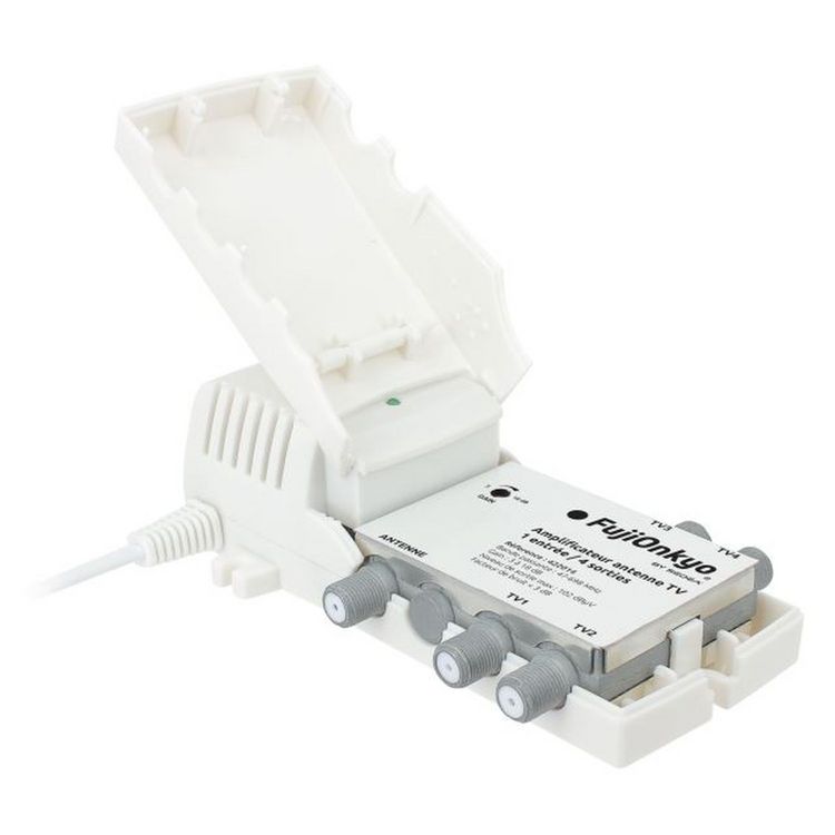 améliorer la qualité de réception de votre télévision. Il possède une entrée et 4 sorties, permettant de connecter jusqu'à 4 télévisions différentes à une seule antenne. Il est doté d'un amplificateur de gain élevé et de filtres anti-interférences pour assurer une réception optimale du signal. Il est également compact et facile à installer, avec un design élégant et soigné en blanc. Il est idéal pour les maisons ou les appartements où la réception TV est difficile.
