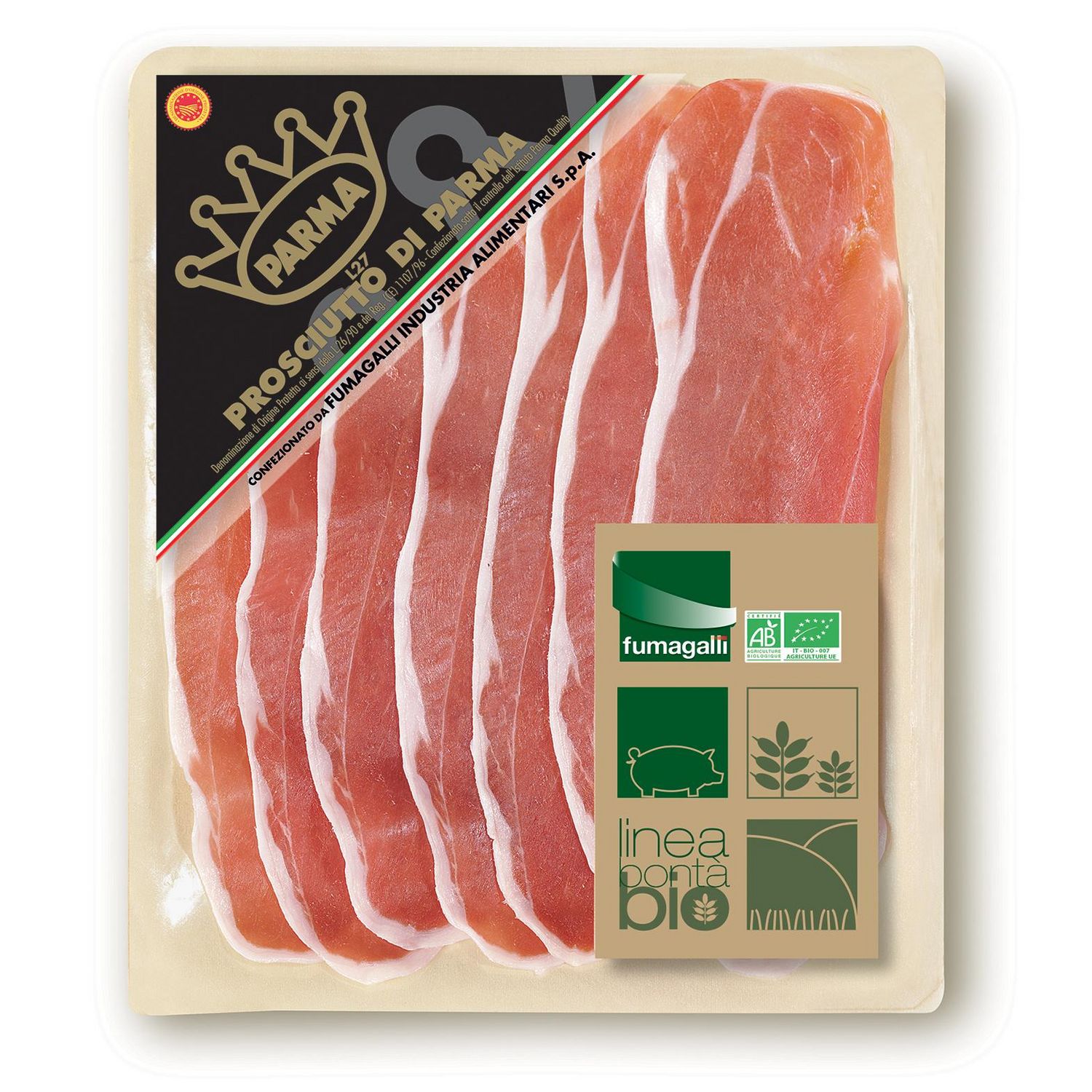 Le Jambon de Parme BIO est un jambon d’Appellation d’Origine Protégée. Il est obtenu à partir de cuisses de porcs nés, élevés et abattus en Vénétie, Lombardie, Piémont, Émilie Romagne, Ombrie, Toscane, Marches, Abruzzes, Latium et Molise.