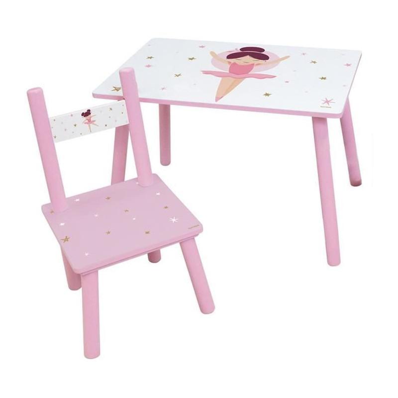 FUN HOUSE Danseuse Ballerine Table H 41,5 cm x l 61 cm x P 42 cm avec une chaise H 49,5 cm x l 31 cm x P 31,5 cm - Pour enfant