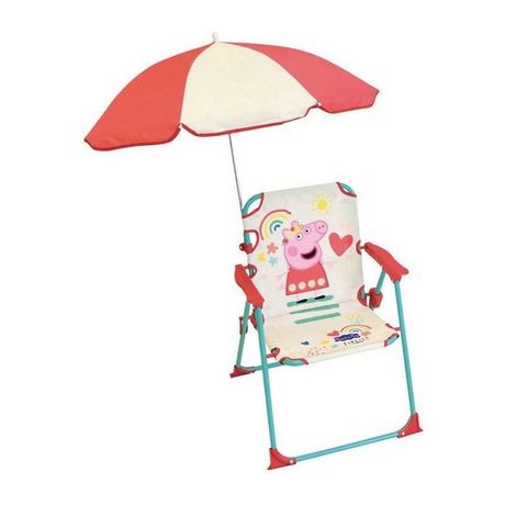 FUN HOUSE Peppa Pig Chaise pliante camping avec parasol - H.38.5 xl.38.5 x P.37.5 cm + parasol ø 65 cm - Pour enfant