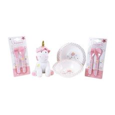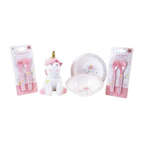 - Set complet 5 pièces (vaisselle + peluche licorne)