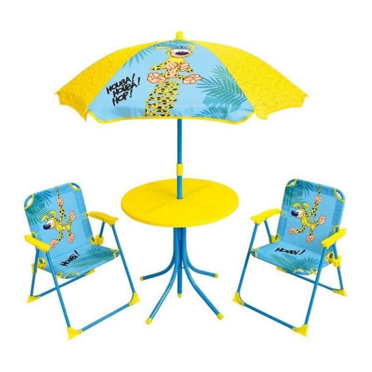 MARSUPILAMI Salon de jardin pour enfants comprenant 1 table, 2 chaises pliantes et 1 parasol