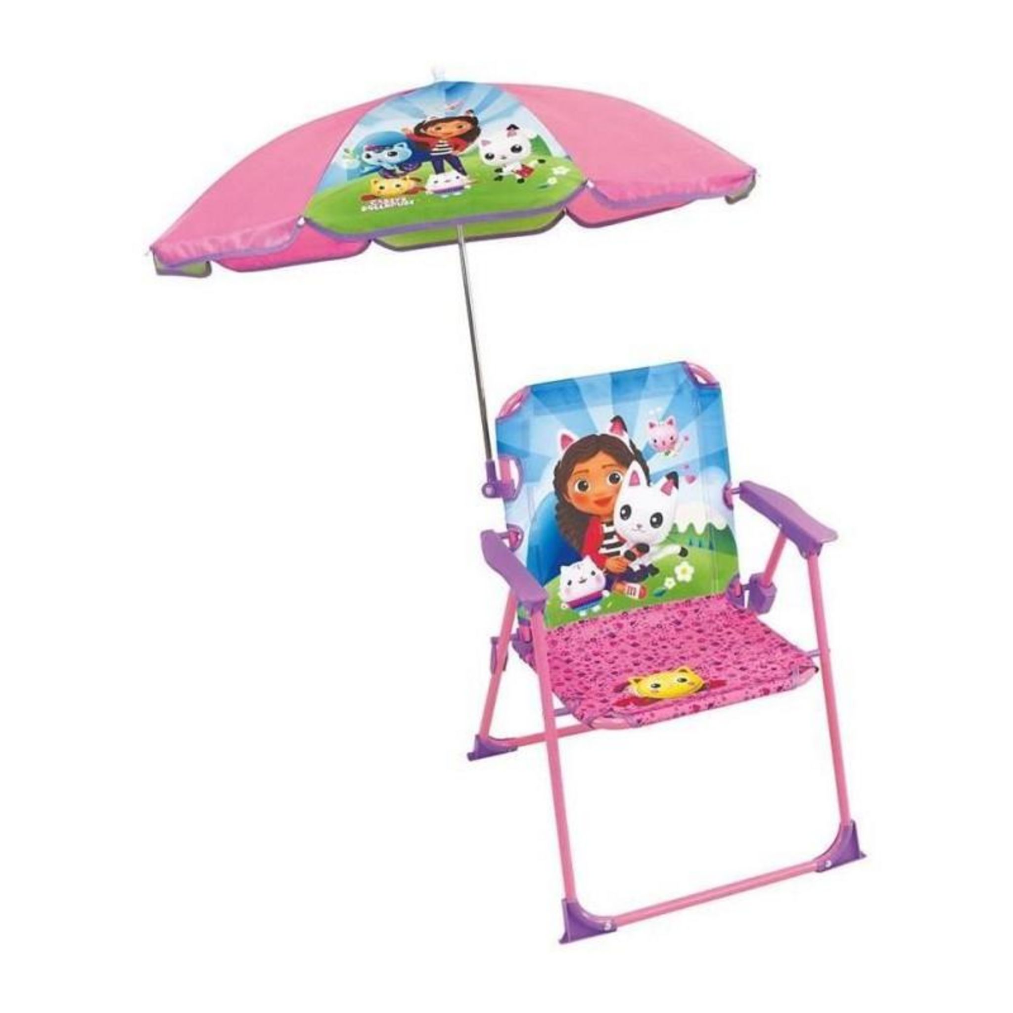 Mobilier de jardin - FUN HOUSE - Chaise pliante Gabby et la Maison Magique H.53 x L.38,5 x P.37,5 cm avec parasol 65 cm