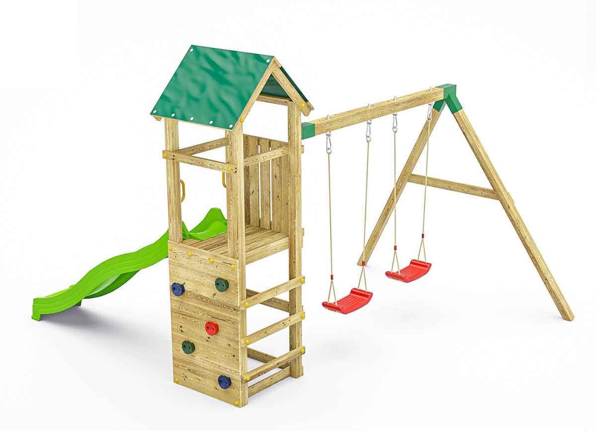 Aire de jeux Charly avec balançoire double et mur d'escalade - Fungoo
