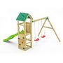 L'aire de jeux Charly Fungoo transforme le jardin en un véritable terrain de jeux pour les enfants. Conçue en bois traité autoclave, elle combine plusieurs équipements : toboggan de 2,20 m, plateforme sous toit, mur d'escalade, échelle en bois et balançoire double, pour des heures de jeu inoubliables. Elle peut accueillir jusqu'à 7 enfants simultanément et favorise l'activité physique dès 3 ans, tout en développant les compétences motrices.