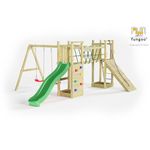 Les enfants peuvent profiter de nombreuses activités, dont un toboggan de 220 cm, une balançoire double, une échelle à barreaux métalliques, un mur d'escalade, un mur d'accès en bois avec corde, un pont en bois avec cordage et deux bacs à sable pour des moments de jeu créatif.